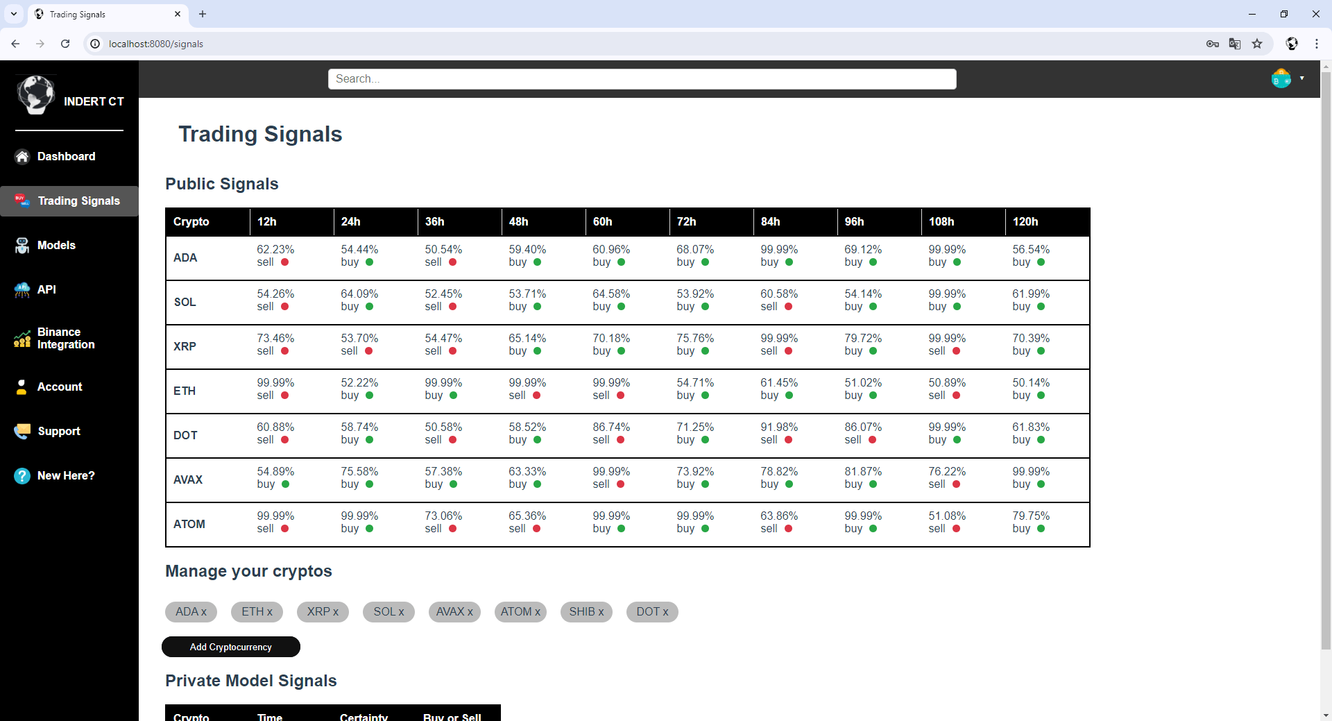 INDERT CT is a Crypto AI Trading that puts on hourly signals for as many cryptos as you want. You can even create your own trading AI bots without coding. It also has an integration with the OKX exchange